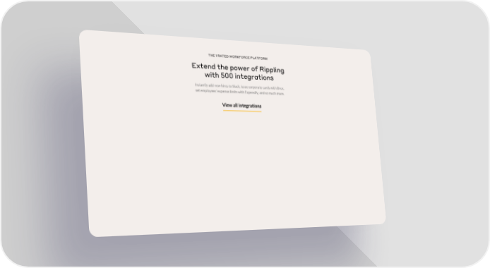 THE 1 RATED WORKFORCE PLATFORM Extend the power of Rippling with 500 integrations Instantly add new hires to Slack, issue corporate cards with Brex, set employees’ expense limits with Expensify, and so much more. View all integrations